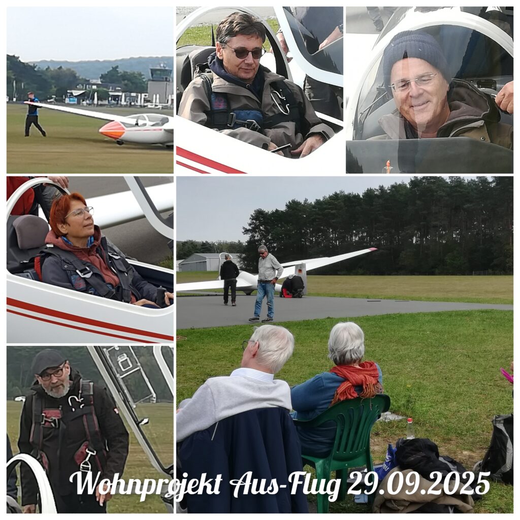 September 2025: Unser Genosse Helmut ist Segelfluglehrer und hat uns zu einem Ausflug eingeladen. Das war aufregend, eindrücklich und beglückend! Wir durften vorne im Flugzeug sitzen und auch steuern!