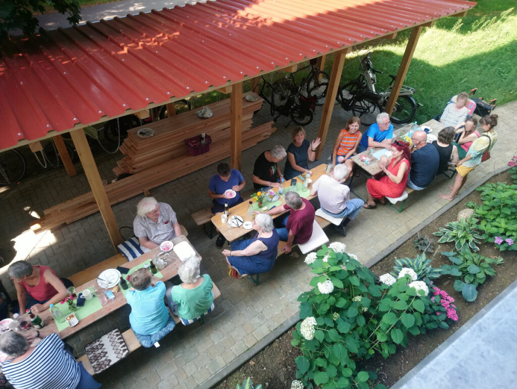 August 2025: Unser Sommerfest fand vor und wegen der Sonne auch hinter dem Haus statt, und wir hatten viel Spaß und wie immer feine Verpflegung!